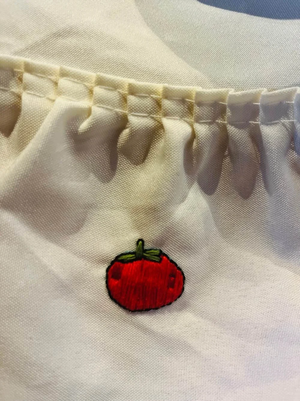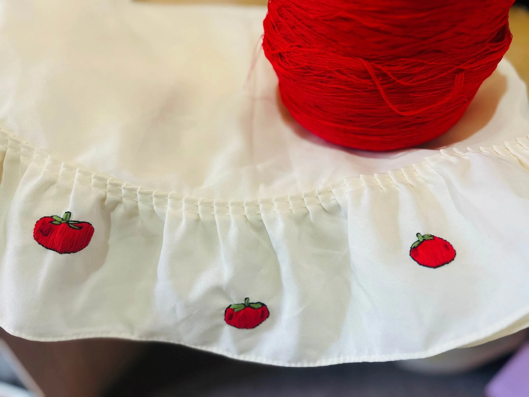 Taking a pre-loved vintage item and adding some GGS creatives to it is exactly what this project was about. We get easily obsessed with finding vintage tablecloths, lace, and napkins and adding handcrafted embroidery to the edges. This is one of GGS's current projects called‘Amore del Pomodoro’—tomato love.